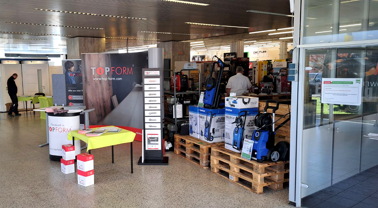Ein beliebter Treffpunkt für Kund:innen, Lieferanten und Partner:innen aus der Branche. Die Hausmesse findet zweimal jährlich – im Frühjahr und Herbst – statt und hat sich längst als fester Termin im Kalender vieler Fachbesucher:innen etabliert. Auch TOPFORM war vor Ort, um aktuelle Produktlösungen vorzustellen, neue Kontakte zu knüpfen und im persönlichen Austausch nah an den Bedürfnissen des Fachhandwerks zu bleiben.